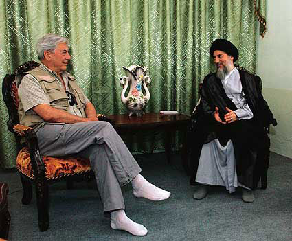 ماریو بارگاس یوسا با آیت الله حکیم دربارۀ ابعاد مختلف جنگ عراق سخن میگوید. یوسا با اشاره به اینکه آیت الله حکیم ۲۳ سال از عمر ۶۳ سالهاش را در ایران در تبعید به سر برده است، میگوید: «خیلیها او را متهم میکنند که از الگوی اسلامی حاکم بر ایران پیروی میکند و به آن نزدیک است، ولی خود حکیم میگوید: “عراق رونوشتی از ایران و یا هیچ کشور دیگری نخواهد شد. هر کشور، ویژگی خود را دارد. ما عقیده داریم که در عراق باید حکومتی دموکراتیک بر سر کار بیاید که تمام تبارها و اقلیتهای مذهبی بتوانند در آن نماینده داشته باشند، ولی در عین حال، حکومت باید برای هویت و تاریخ ما حرمت قائل شود.”»